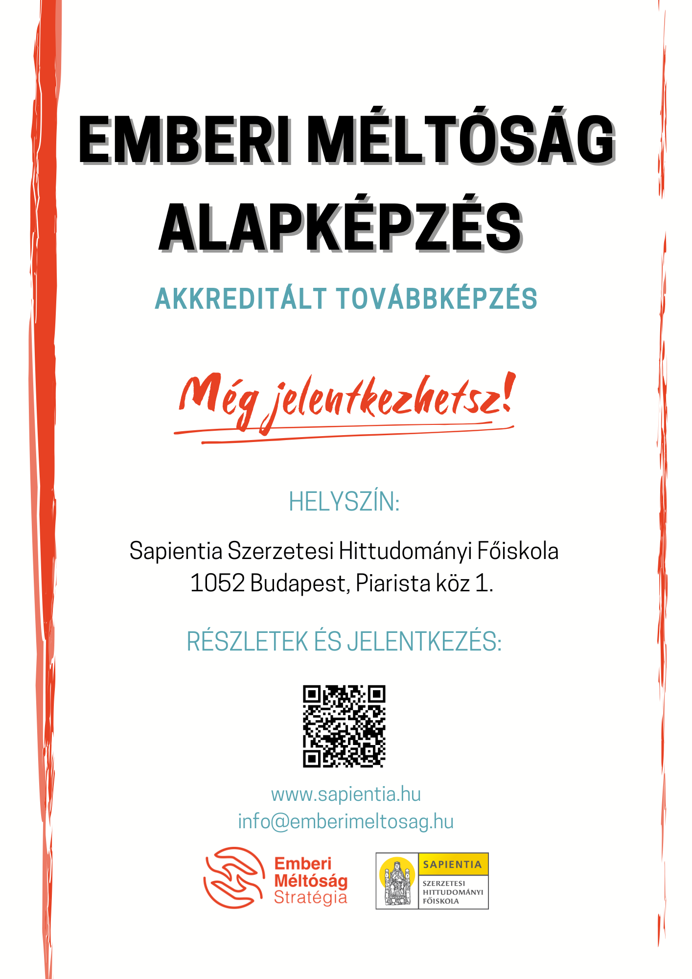 Az emberi méltóság védelmében indítjuk ismét 30 és 120 órás akkreditált pedagógus képzéseinket a Sapientia Szerzetesi Hittudományi Főiskolával való együttműködésben, melyre még szeptember 20-ig van lehetőség jelentkezni.