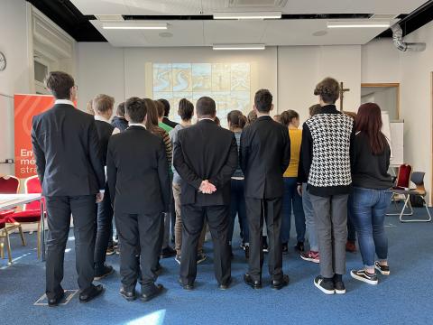 Az Emberi Méltóság Stratégia szervezésében háromszor találkoztunk, hogy háromórás alkalmakon dolgozzunk együtt a bencés, ferences és piarista rendek által fenntartott iskolák kilencedikes tanulóival.