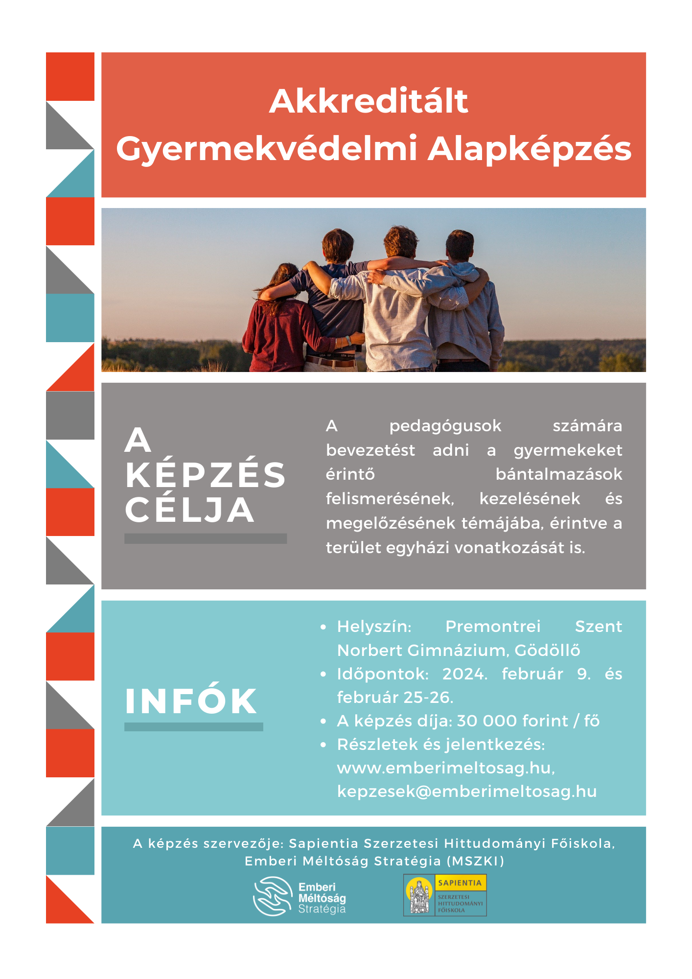 A képzés szervezője: Sapientia Szerzetesi Hittudományi Főiskola, Emberi Méltóság Stratégia (Magyarországi Szerzeteselöljárók Konferenciáinak Irodája)
