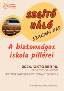 Ezért a következő, 2024.10.10-én megrendezett Segítő Háló napunk témája "A biztonságos iskola alappillérei" lesz.
