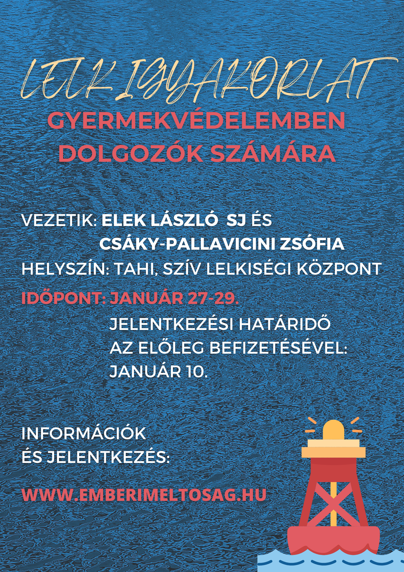 Nem vagyunk egyedül. Nem vagy egyedül. Ebben sem. Van Valaki, aki megért minket, aki átéli velünk a viharokat. Aki lecsendesít, fenntart, megnyugtat, bíztat. Bele szeretnénk kapaszkodni ezen a lelkigyakorlaton is a csendekben, az imákban, a közös liturgiában. Egymástól nyerni erőt a megosztásokban, hogy visszatérve a hétköznapokba megújult erővel tudjunk tovább úszni. Megerősödjünk a hitben és Jézusban, hogy Őt tudjuk adni oda, ahol a legnagyobb szükség van rá.
