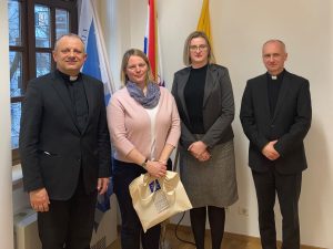 Marina Šijaković és P. Josip Bosnjakovic bemutatta a Központ munkáját, és megosztották tapasztalataikat a horvát katolikus egyházban végzett munkájukról. A találkozó első napján röviden bekapcsolódott az egyeztetésekbe a Kiszolgáltatott Személyek Jólétét Elősegítő Központnak otthon adó Horvát Katolikus Egyetem rektora, P. Željko Tanjić is, aki szintén bátorította a jelenlévőket az együttműködésre és személyes támogatásáról biztosította őket.